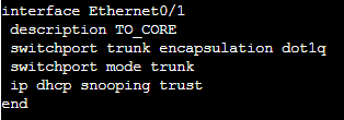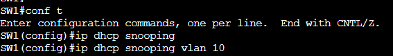!Activation du DHCP Snooping globalement ip dhcp snooping !Activation du DHCP Snooping sur le vlan 10 ip dhcp snooping vlan 10