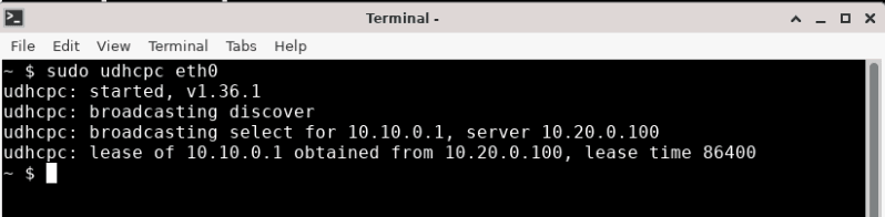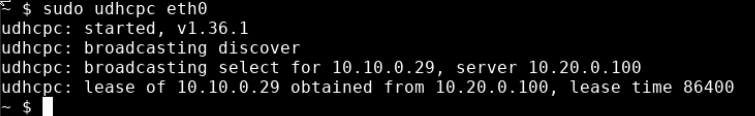 > sudo udhcpc eth0
