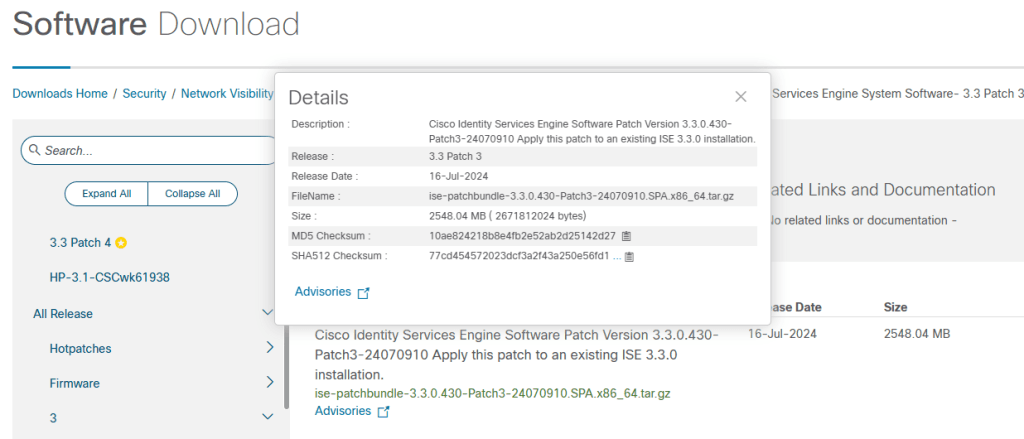 Je décide de télécharger le patch 3 pour mon installation d’ISE en version 3.3.