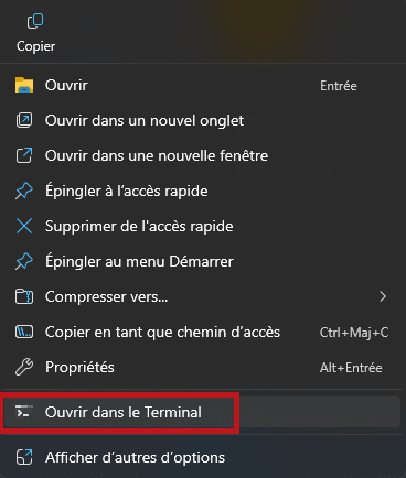 Vous pouvez y aller avec le gestionnaire de fichiers et faire un clic droit dessus (Ouvrir dans le terminal)